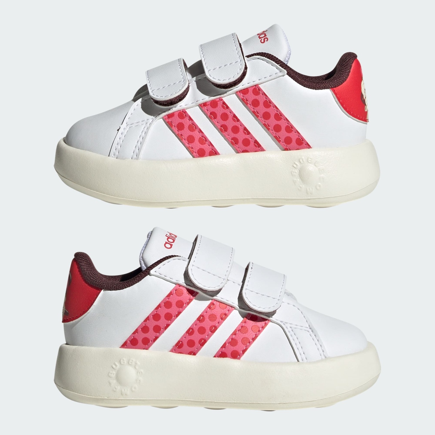 These adithtdas shoes are designed to bring joy to the smallest Disney's Minnie Mouse fans. Hook-and-loop straps make them easy to get on and off, while a one-piece moulded EVA unitsole provides cushioning for all-day play. Minnie Mouse colours and graphics add a playful finishing touch.This product features at least 20% recycled materials. By reusing materials that have already been created, we help to reduce waste and our reliance on finite resources and reduce the footprint of the products we make.