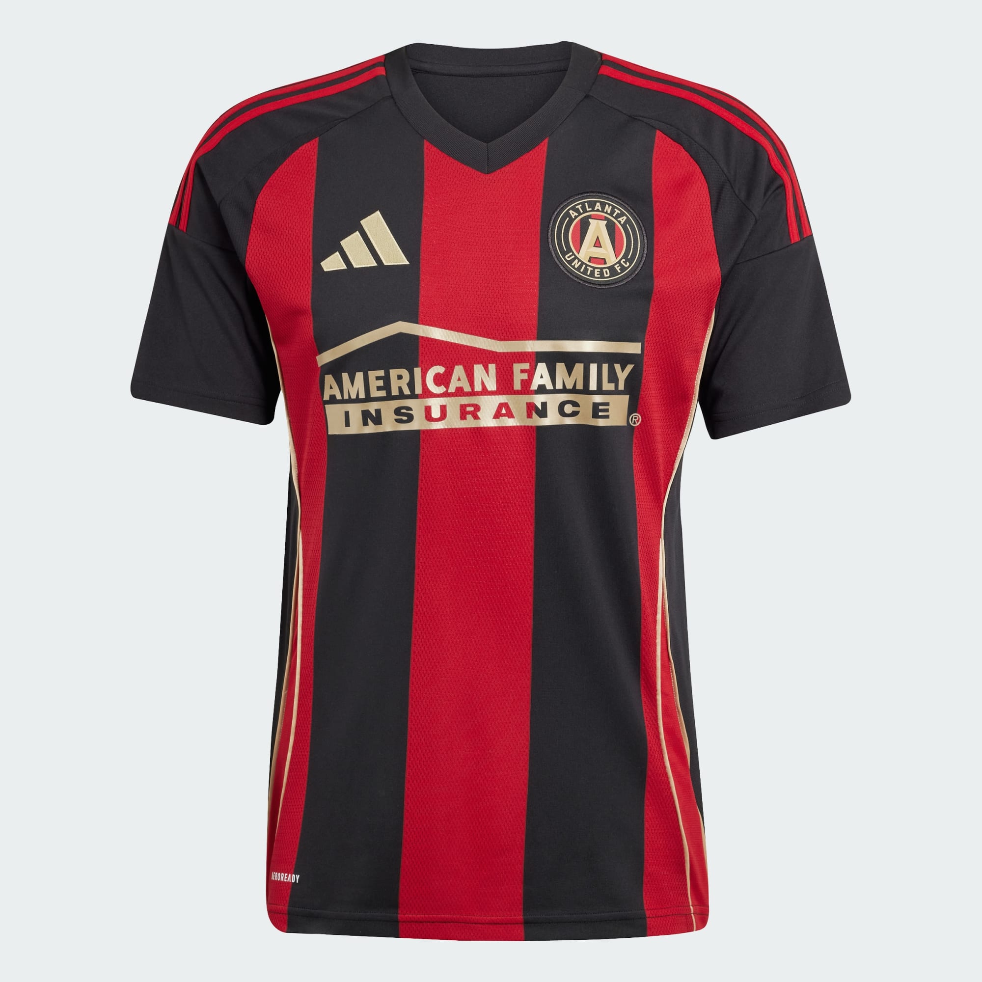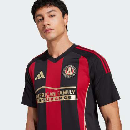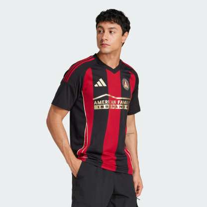 5-Stripes. Five pillars that represent Atlanta United FC's identity. The adithtdas jersey fans wear at the Mercedes-Benz Stadium, this soccer top displays ATL UTD's famous red and black home kit design. With soft fabric and golden details, it feels as good as it looks. A sewn-on club crest and "Atlanta United" back-neck sign-off show you belong.This product is made with 100% recycled materials. By reusing materials that have already been created, we help to reduce waste and our reliance on finite resources and reduce the footprint of the products we make.