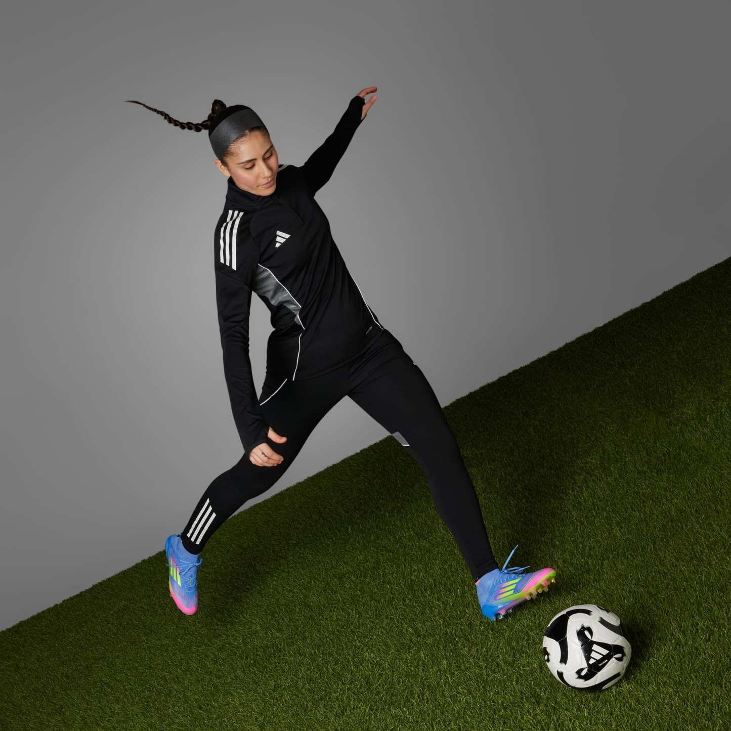 Mid-cut firm ground cleats for lightning pace, made in part with recycled materials.
