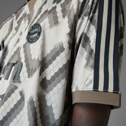 Represent FC Bayern in this eye-catching adithtdas jersey. Part of a collaboration with BSTN, it displays an all-over design incorporating the Munich brand's signature snakeskin print. Standing out on the chest, a club-inspired badge shows your soccer pride.