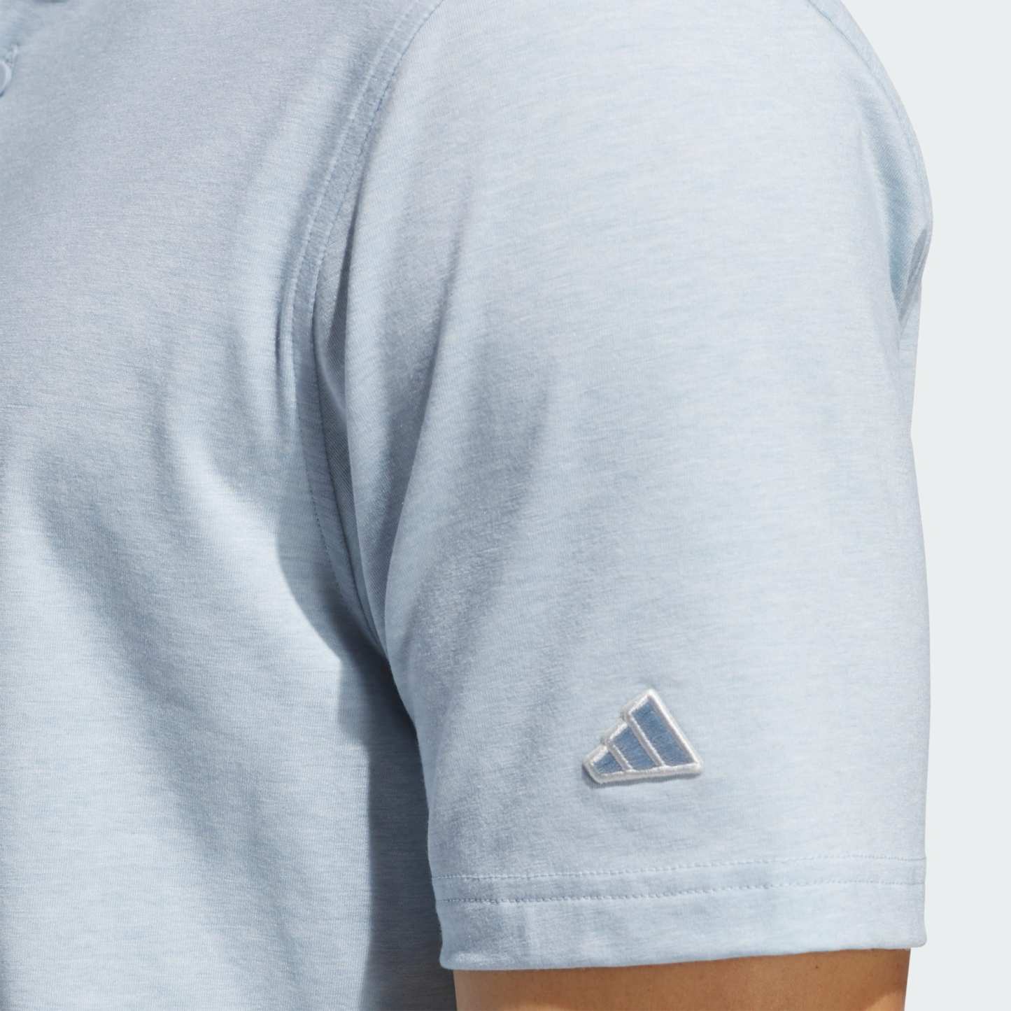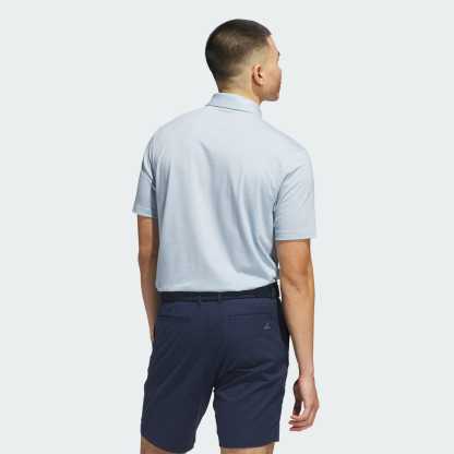 A golf polo shirt with stretch, made in part with recycled materials.