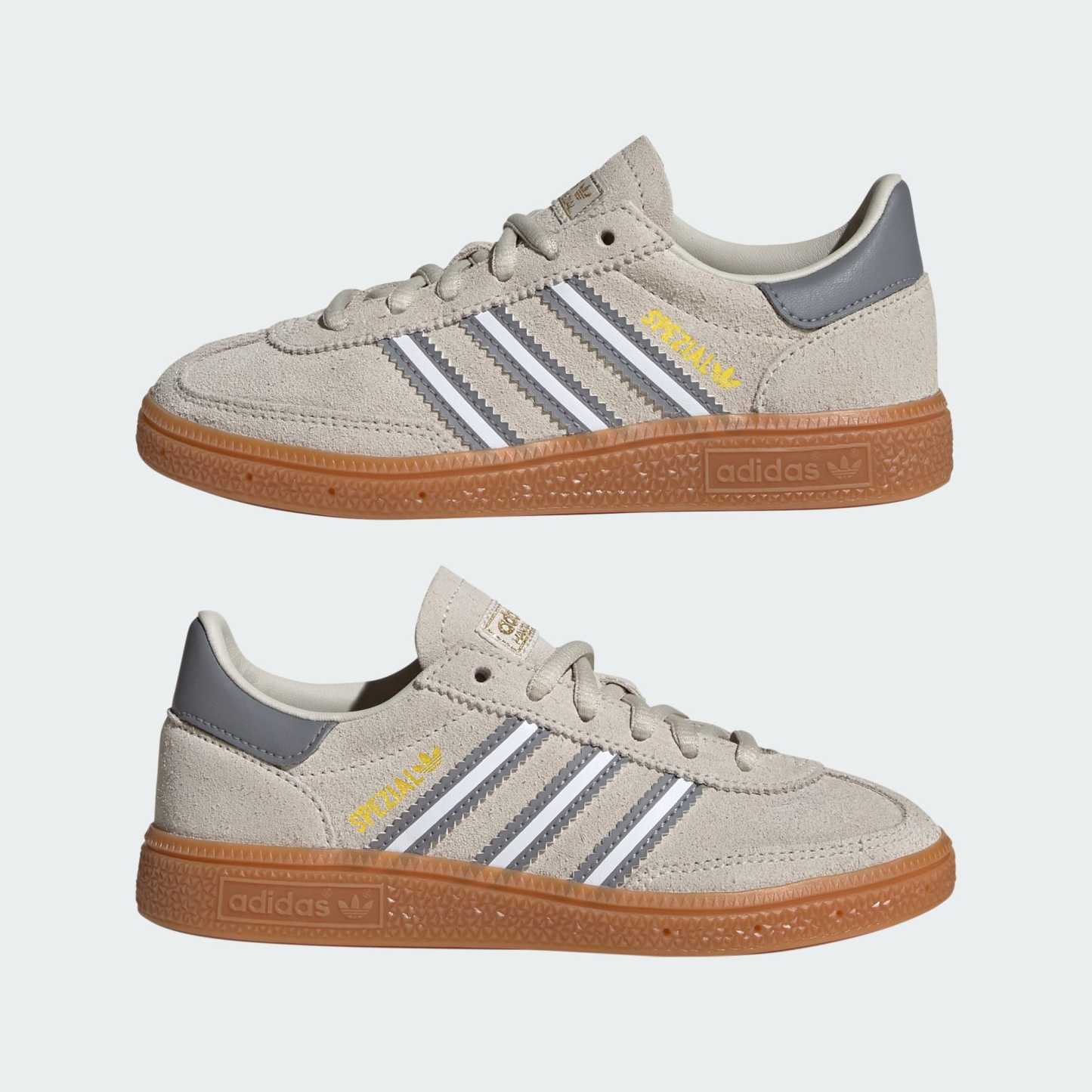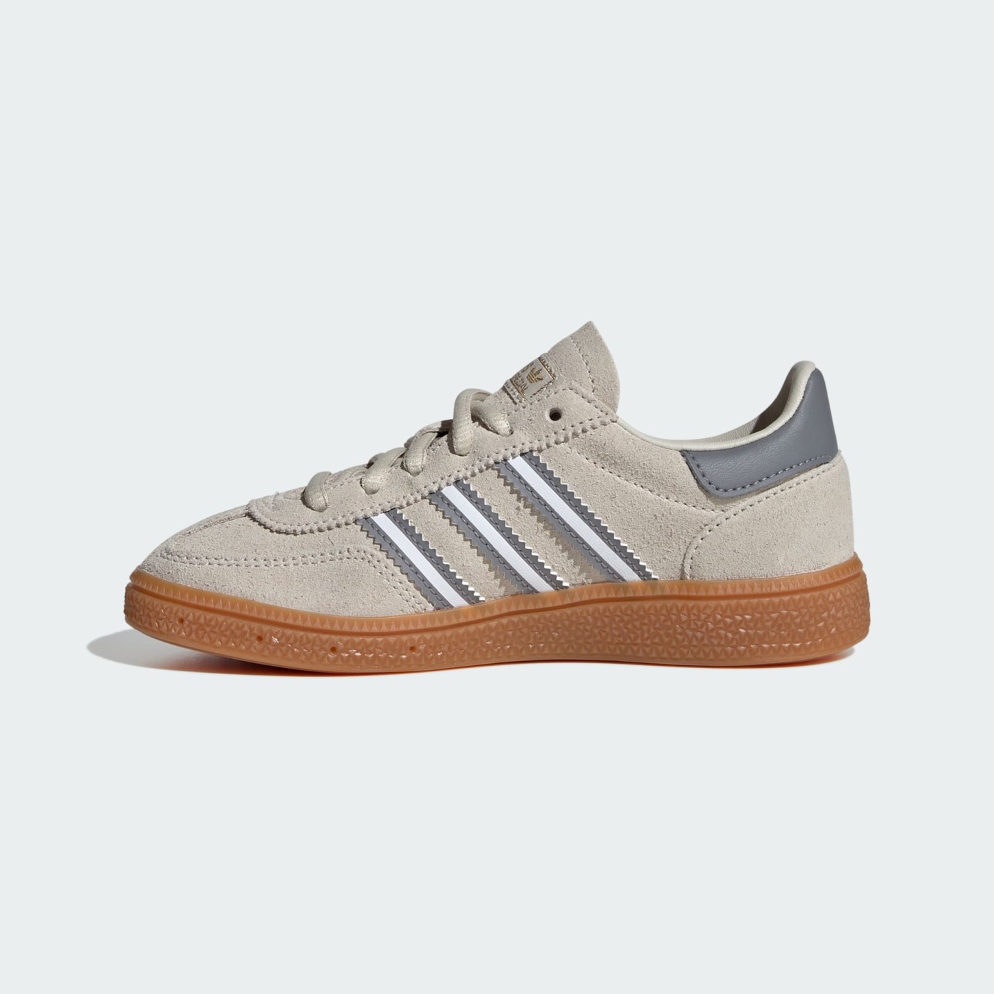 From blacktop to sidewalk, kids need shoes that can keep up. The adithtdas Handball Spezial is built for kids on the move. Scaled down for growing feet, these retro-inspired shoes bring big style in a small package. Their suede upper and gum rubber sole provide toughness from top to bottom, with grippy traction for all their running and playing. Serrated 3-Stripes, a double-stitched T-toe and classic Spezial branding finish off the look.