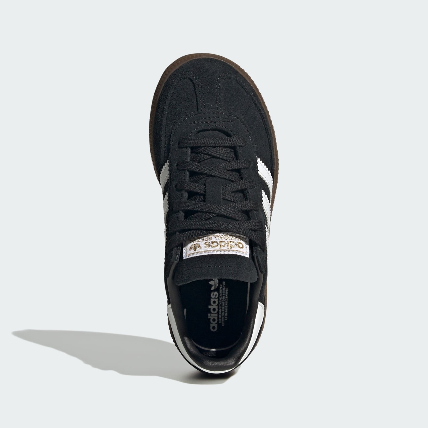 From blacktop to sidewalk, kids need shoes that can keep up. The adithtdas Handball Spezial is built for kids on the move. Scaled down for growing feet, these retro-inspired shoes bring big style in a small package. Their suede upper and gum rubber sole provide toughness from top to bottom, with grippy traction for all their running and playing. Serrated 3-Stripes, a double-stitched T-toe and classic Spezial branding finish off the look.