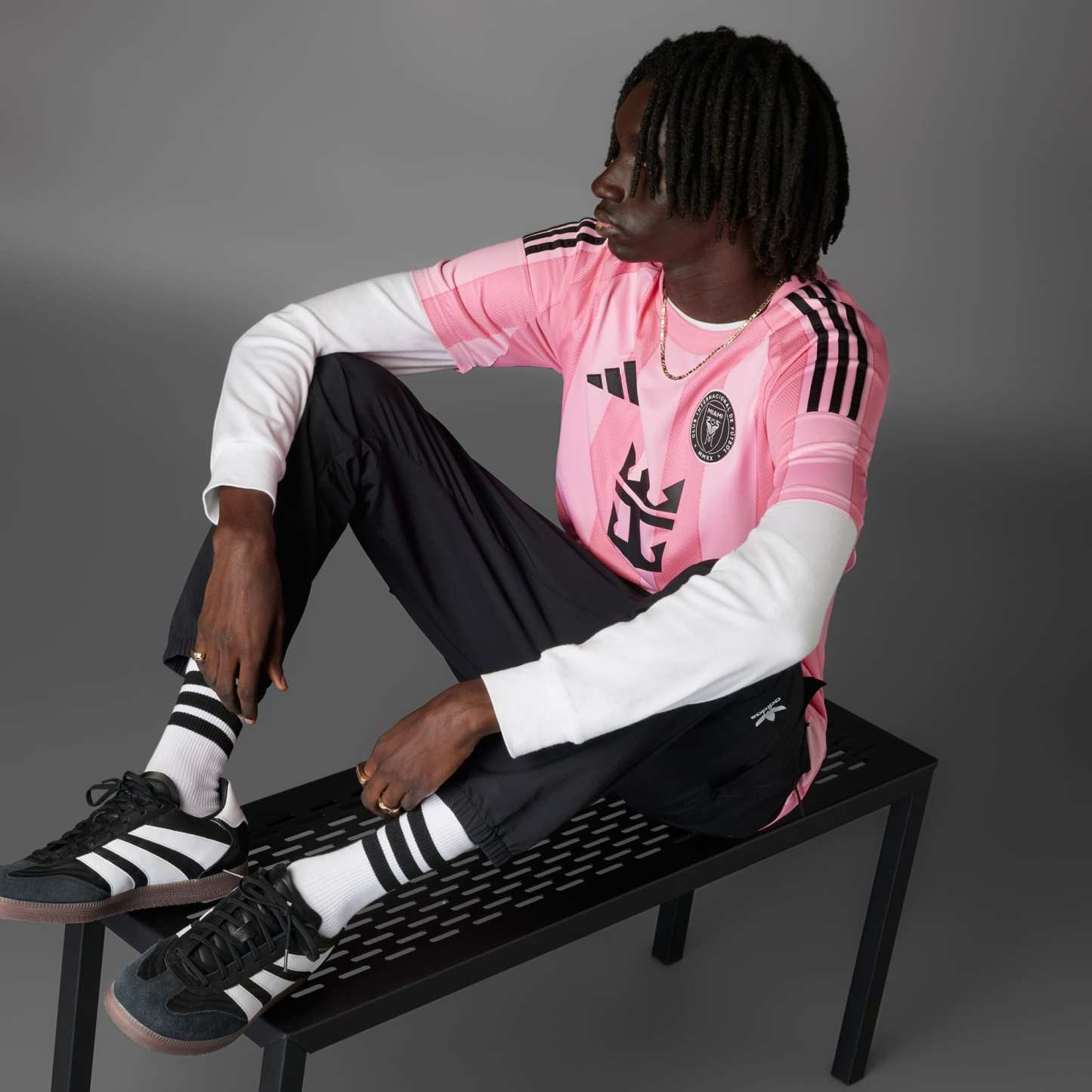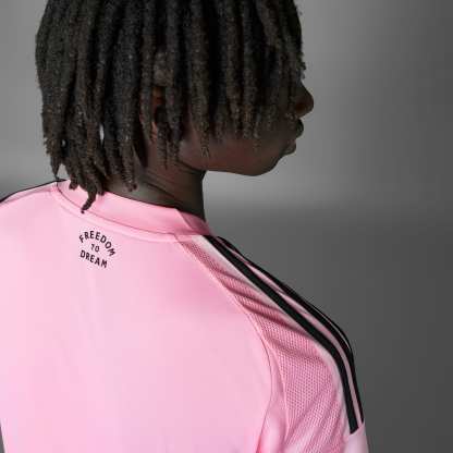 Classic soccer stripes finished in instantly recognizable Inter Miami CF colors. Standing out in two shades of pink, this adithtdas jersey leaves no doubts about your favorite club. Created for supporters, it has moisture-managing AEROREADY for all-day comfort and a premium woven badge for full-on team pride.This product is made with 100% recycled materials. By reusing materials that have already been created, we help to reduce waste and our reliance on finite resources and reduce the footprint of the products we make.