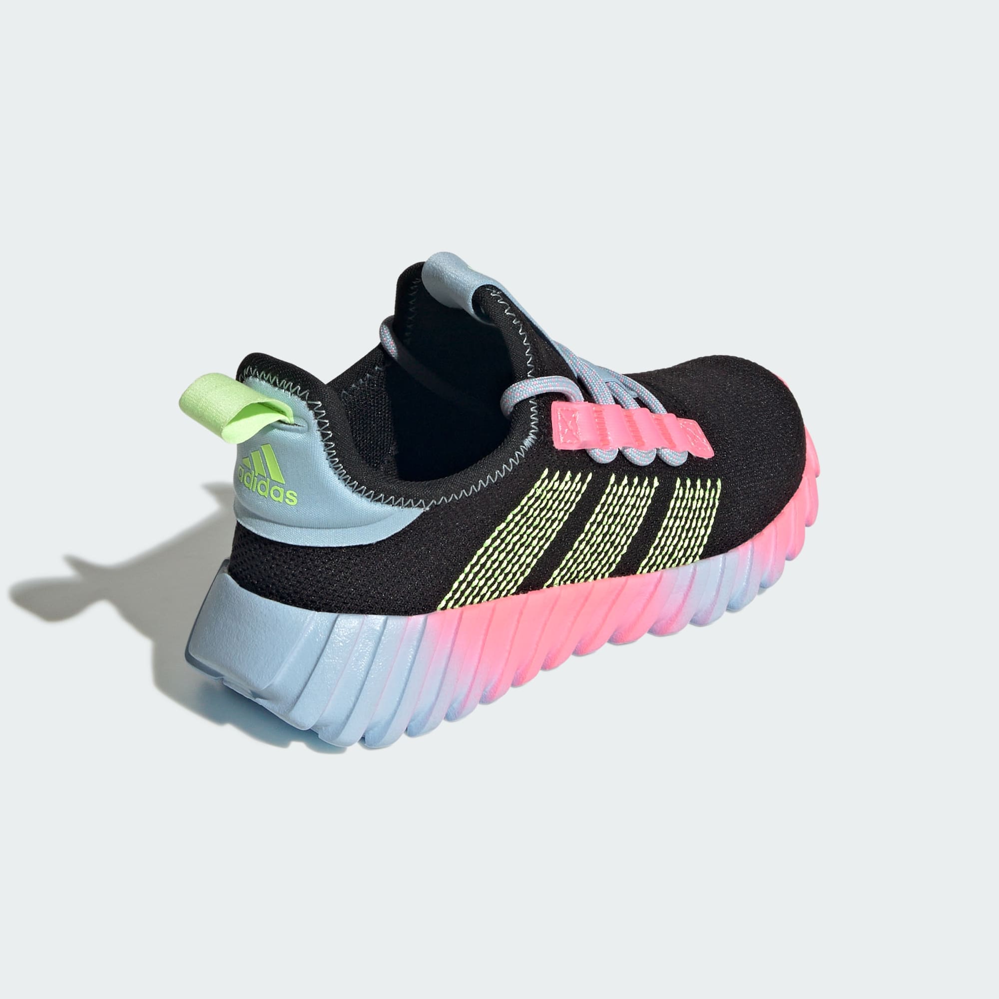 Set growing feet free with these kids' adithtdas shoes. The sock-like upper promises a snug fit, staying put with every step. Lightweight cushioning lets kids move comfortably, whether playing tag or taking shots at goal. The rubber outsole means business, ready to grip the ground as they run, skip and jump. Made for maximum movement, these shoes let kids unleash their energy. This product features at least 20% recycled materials. By reusing materials that have already been created, we help to reduce waste and our reliance on finite resources and reduce the footprint of the products we make.