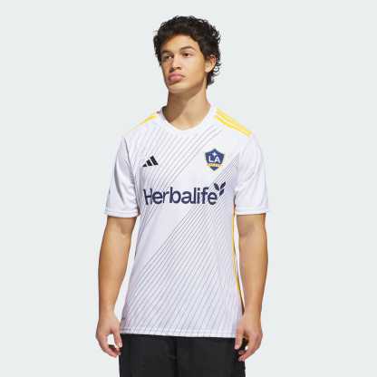 The sash is back. Shout for LA Galaxy in an adithtdas home jersey displaying a modern take on the club's iconic symbol. Stay focused on the action thanks to moisture-wicking AEROREADY and show your support for club and city with a woven badge and "Los Angeles" sign-off. Created for soccer fans, this jersey shows you stand with your team.This product is made with 100% recycled materials. By reusing materials that have already been created, we help to reduce waste and our reliance on finite resources and reduce the footprint of the products we make.