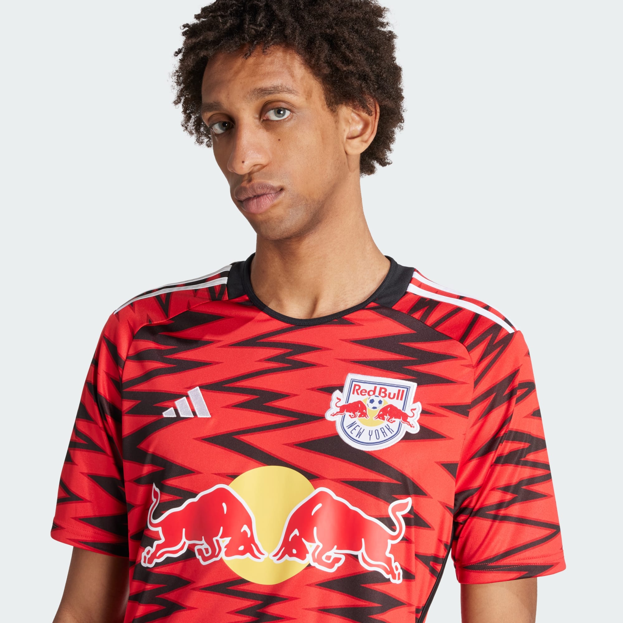 Cheer on your team in iconic style. Showing off a bold design dominated by zigzag pinstripes, this adithtdas New York Red Bulls jersey puts a modern spin on a classic club shirt. Moisture-wicking AEROREADY keeps you comfortable in the stands or on the streets. A woven club badge on the chest displays your soccer allegiances.This product is made with 100% recycled materials. By reusing materials that have already been created, we help to reduce waste and our reliance on finite resources and reduce the footprint of the products we make.