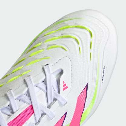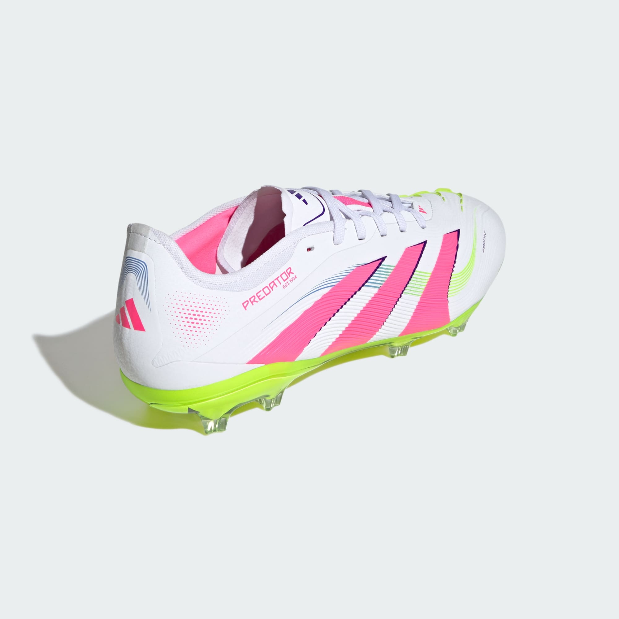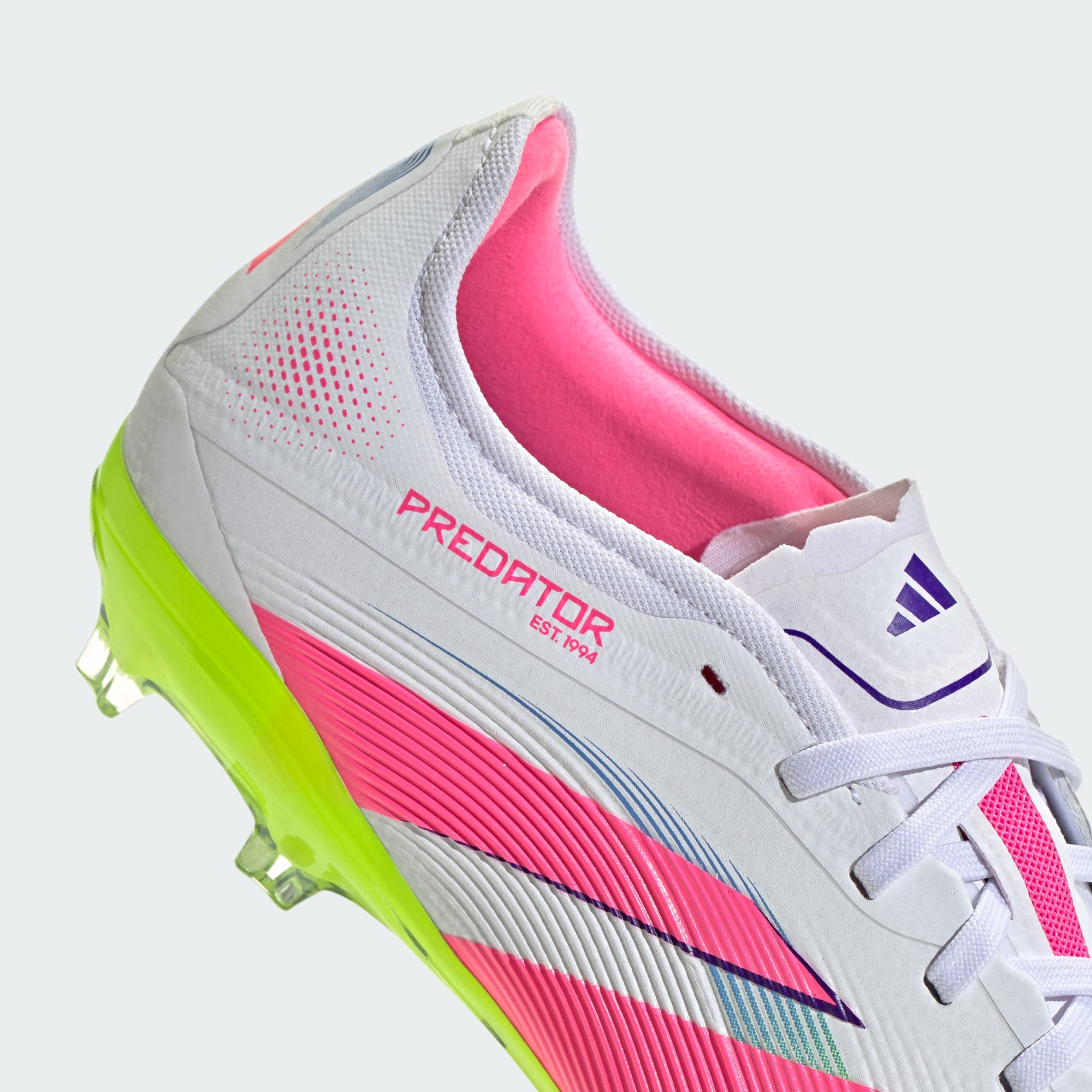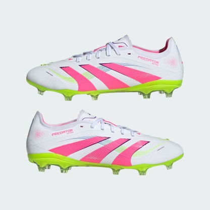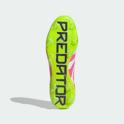 Go into every game knowing you'll score in adithtdas Predator Pro cleats crafted for goals. Grippy rubber Strikeskin fins on the soft, flexible HybridTouch upper assist with every strike of the soccer. Underneath, a full-length Controlplate outsole offers all the stability you need to set your sights on firm ground pitches.