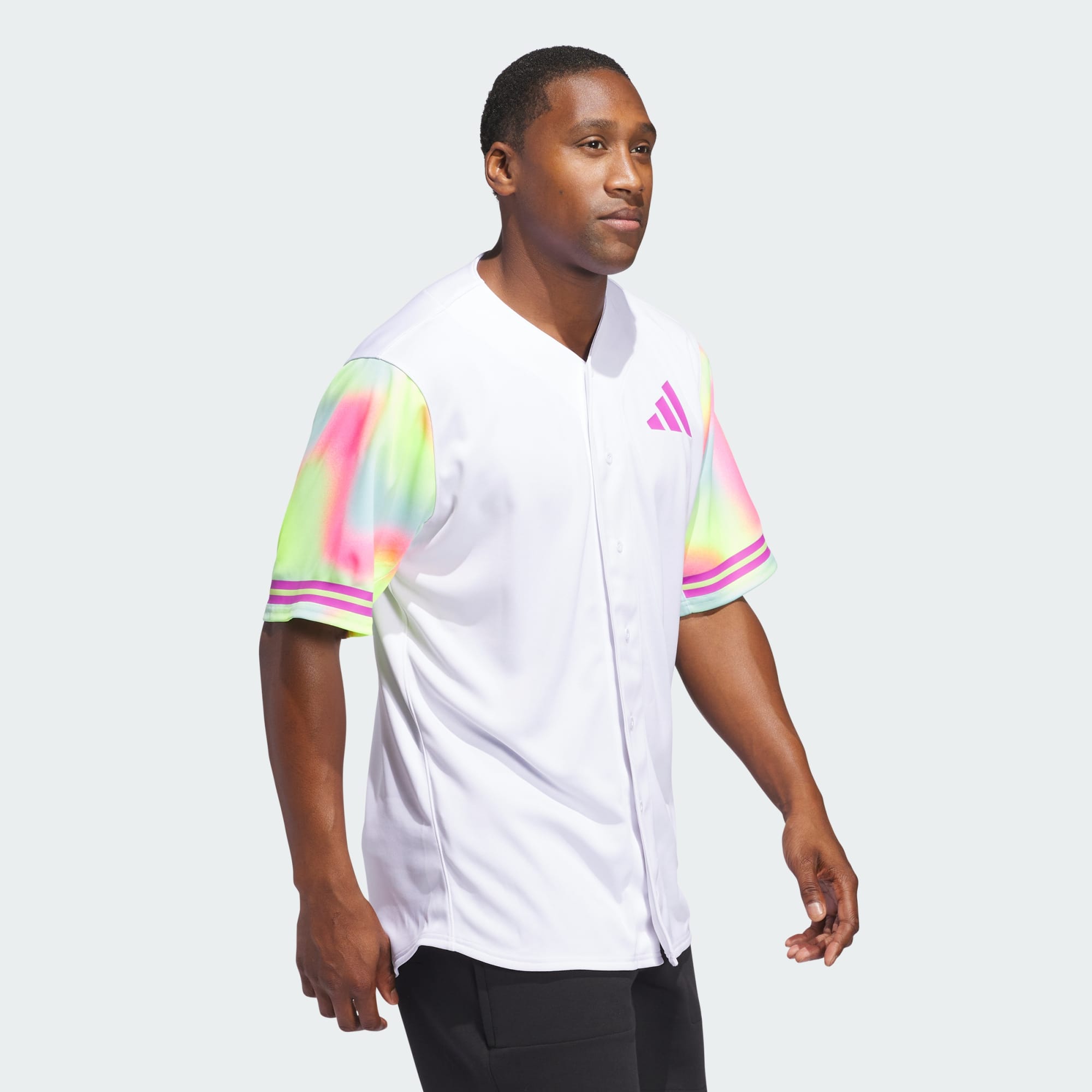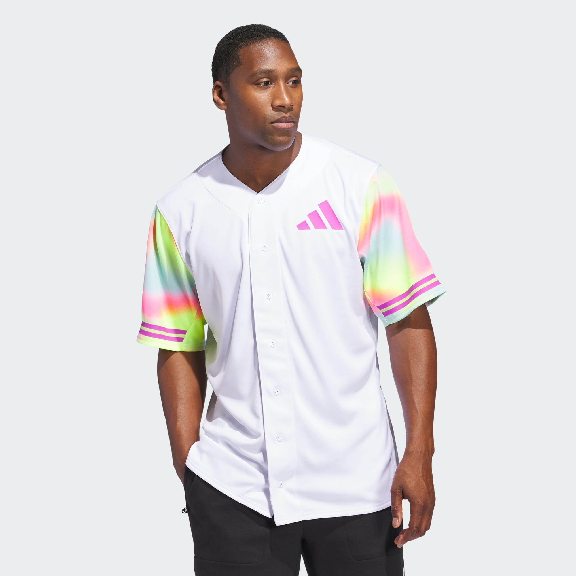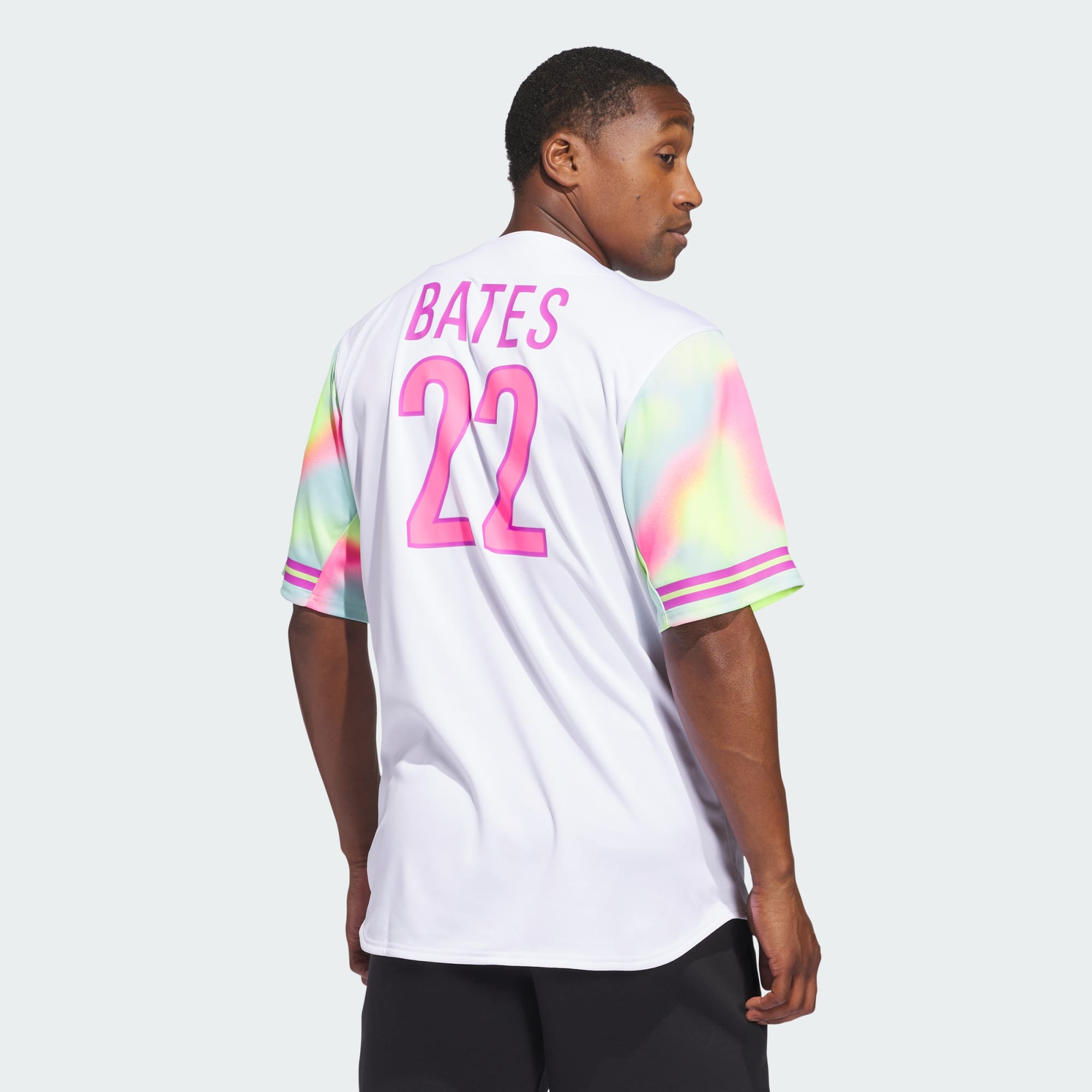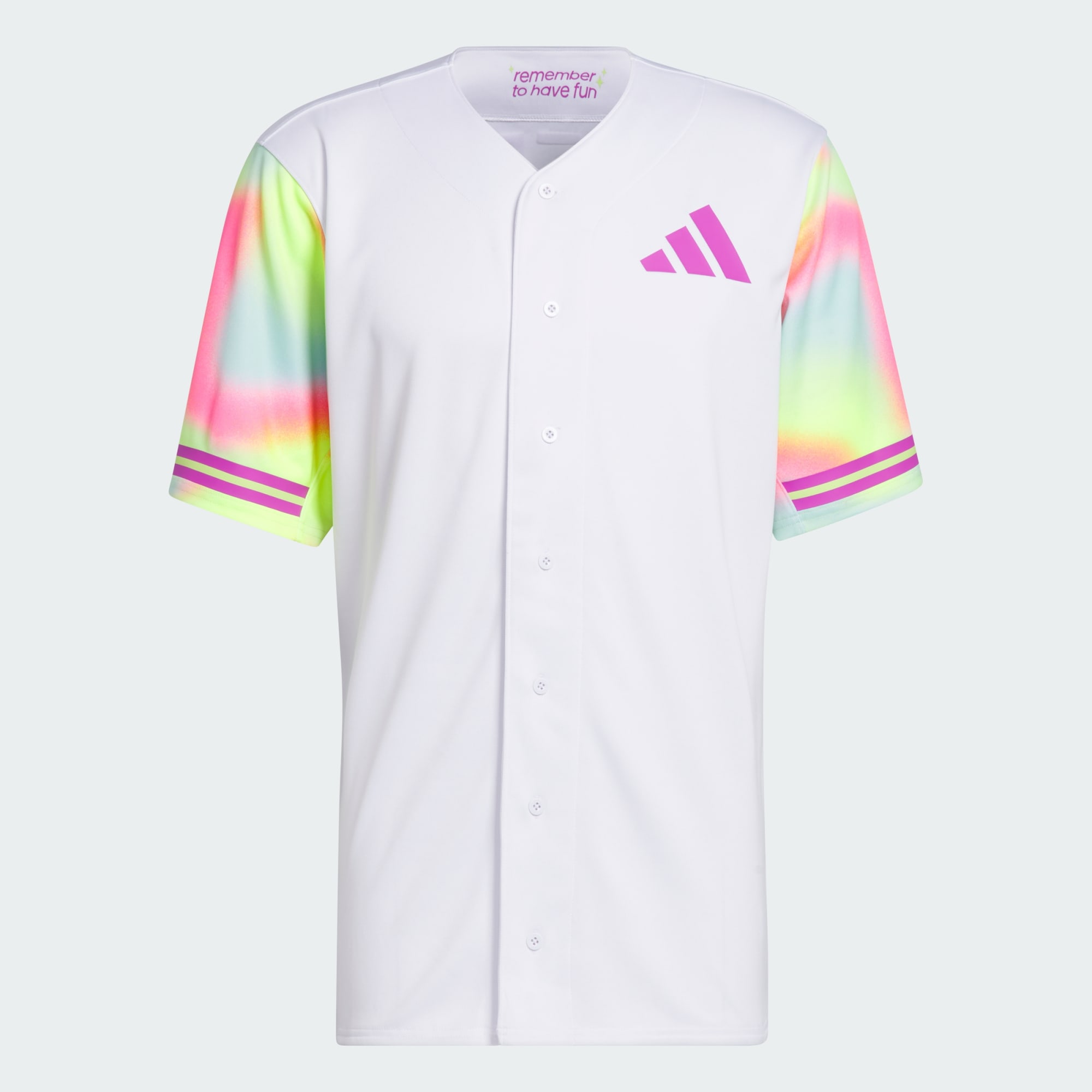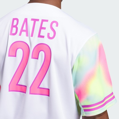 The game of baseball is all about fun. This' baseball jersey from adithtdas is made in collaboration with softball pro Sis Bates and features a colorful print that serves as a reminder that you should "Remember to Have Fun" playing your favorite game. The polyester build holds up to the wear and tear of the baseball season.This product is made with 100% recycled materials. By reusing materials that have already been created, we help to reduce waste and our reliance on finite resources and reduce the footprint of the products we make.