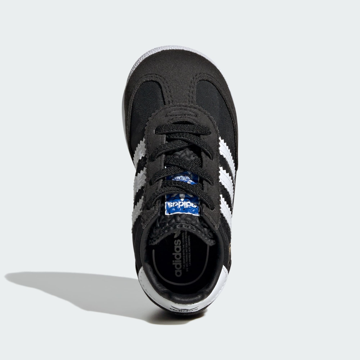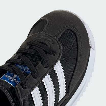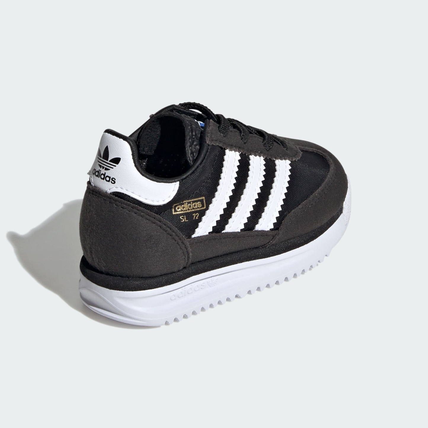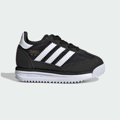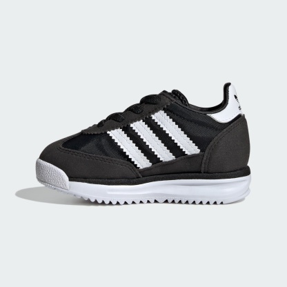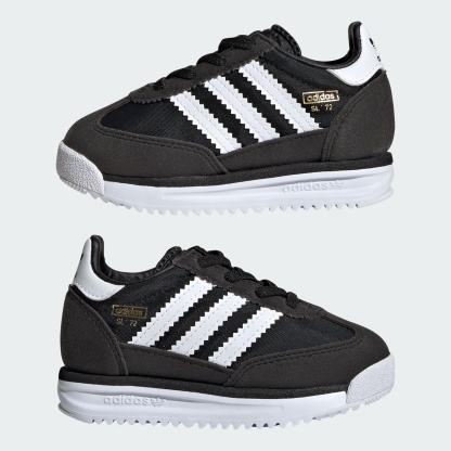 These toddlers' adithtdas shoes pay homage to the '70s runner that debuted in 1972. A nylon upper with suede overlays nods to the original while an EVA midsole supports their earliest adventures. Stretchy elastic laces make them easy to slip on and off, and a durable rubber outsole stands up to exploratory play.