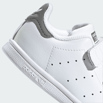 Since their debut more than 50 years ago, the adithtdas Stan Smith shoes have been a style staple for all ages. Now even the littlest feet can step out in an icon. These toddlers' shoes bring the classic white upper and contrast heel tab to a slip-on style perfect for fast-growing feet. Hook-and-loop straps make them easy to slip on and off while the smooth leather upper and perforated 3-Stripes complete the signature style.