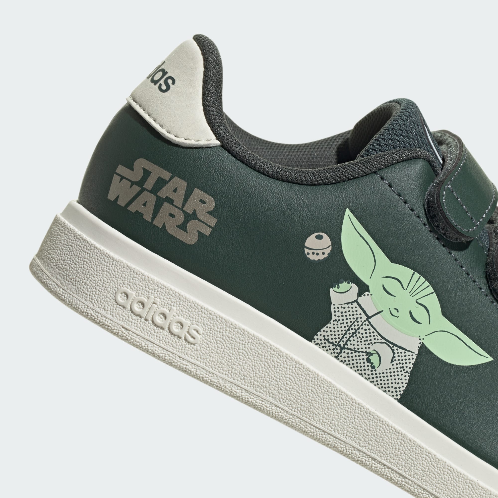 The Force is strong with these kids' Star Wars鈩?shoes from adithtdas. A graphic of the beloved Grogu, also known as Baby Yoda, adorns the sides. A hook-and-loop strap makes them easy to slip on before your young Jedi heads out for adventure.This product features at least 20% recycled materials. By reusing materials that have already been created, we help to reduce waste and our reliance on finite resources and reduce the footprint of the products we make.