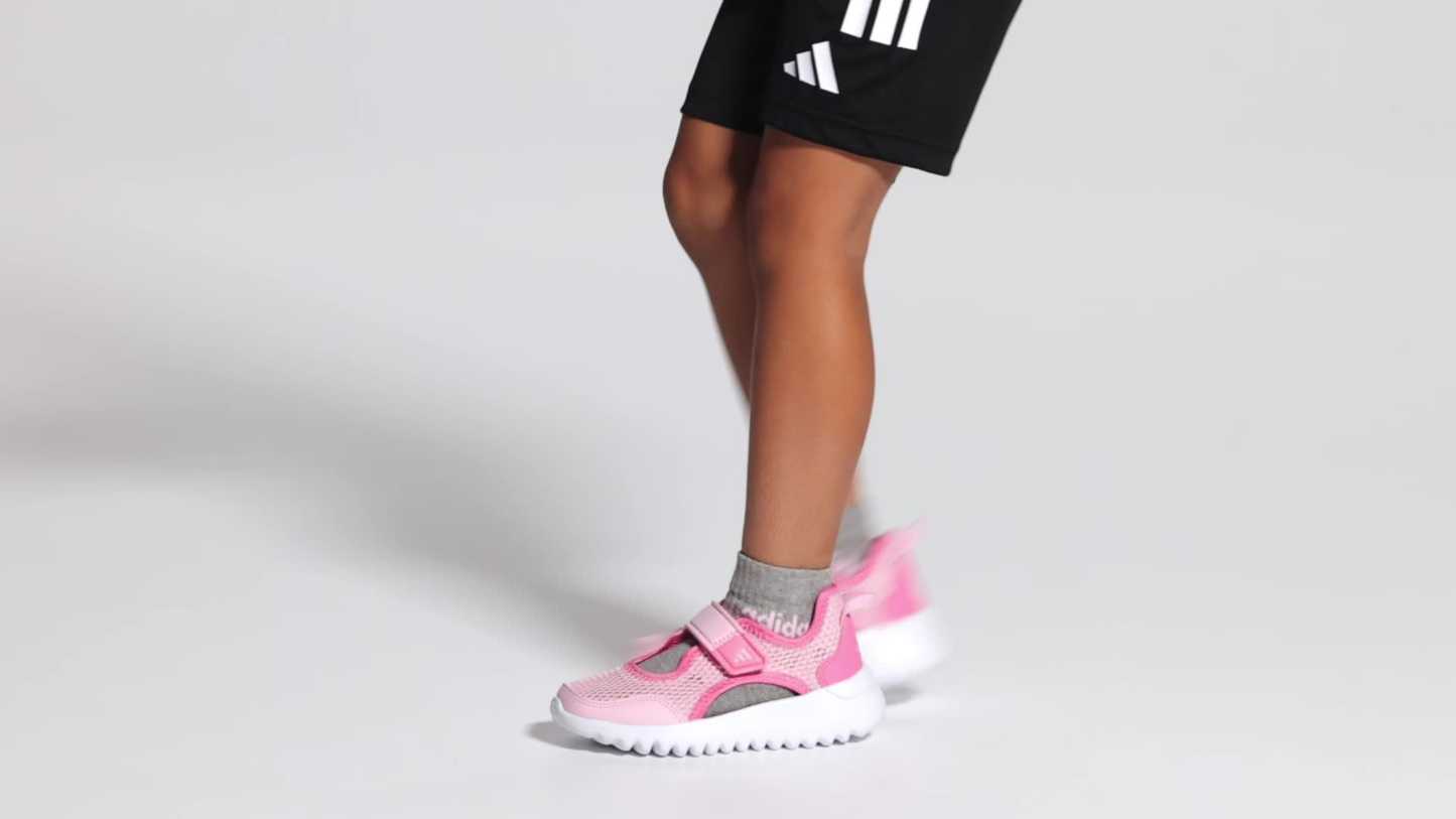 Whether they're running around the playground or hanging out with friends, your kid will love the lightweight feel and sporty look of the adithtdas Summerflex shoes. The soft upper and big hook-and-loop strap provide a snug fit and easy on-and-off. A flexible EVA midsole keeps them comfortable so they can focus on their next adventure.
